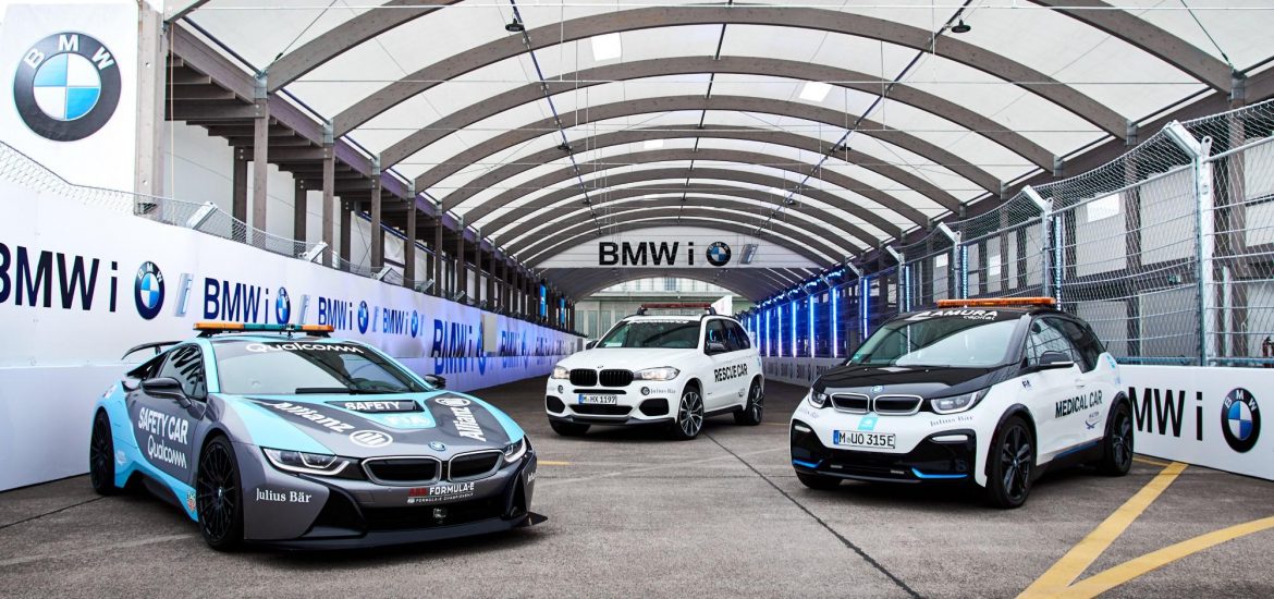 BMW i vuelve a ser el “Socio Oficial de Vehículos” del Campeonato ABB FIA Formula E en su 4ª temporada. Encabezando la flota de BMW i está el nuevo BMW i8 Coupé, modificado con componentes BMW M (con un consumo combinado de combustible: 1.9 l/100 km, y con un consumo de energía 14,0 kWh/100 km, y emisiones combinadas de CO2: 42 g/km, según cifras estimadas).