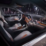 El diseño de la puerta recoge las líneas horizontales del panel de instrumentos y las extiende a los flancos del coche con un barrido dinámico. La puerta principal, por ejemplo, se extiende visualmente hasta el pilar B y crea la sensación de un interior mucho más grande. De hecho la cabina ofrece un nivel poco común de espacio y amplitud para un coche de esta clase. Los asientos de estilo deportivo, que en la parte trasera ofrece dos asientos individuales, mejoran aún más esta impresión. Recubierto por un cuero de nappa suave en un cálido color Ivory y Grey Brown, al igual que Muted Brown, ofrecen un confort imbatible. Acentuación en Velocity Tulip – una fina sombra anaranjada – subraya la geometría deportiva de los asientos, que toman el ejemplo de los de carreras y acentuando el carácter deportivo del vehículo, mientras que se cumplen los requisitos de confort de un vehículo Premium. Además, el gran techo panorámico inunda el interior con luz natural y extiende el espacio por encima de las cabezas de los pasajeros para subrayar la generosa sensación de espaciosidad.