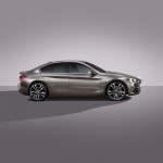 El compacto y ágil exterior del BMW Concept Compact Sedan crea una silueta familiar en un rompedor diseño de tres volúmenes. Las proporciones, sello de BMW imprimen al coche un encanto dinámico e inigualable en el segmento. Su capó y la larga distancia entre ejes estiran el coche visualmente mientras que el diseño retrasado de los pilares y ventanillas subrayan su naturaleza deportiva. El uso inteligente de elementos de BMW como el largo y prominente nervio de acentuación, la dinámica curva Hofmeister y superficies moldeadas con una impresionante profundidad, aseguran que el coche muestre una figura atlética desde el lateral y acentúe su semejanza a otros vehículos de BMW. Las cuatro puertas están integradas de forma armoniosa en sus proporciones y permiten una entrada fácil para el conductor y todos los pasajeros. Discretos y suaves tiradores por debajo del nervio de acentuación abren las puertas en cuanto un dedo toca su superficie metálica.