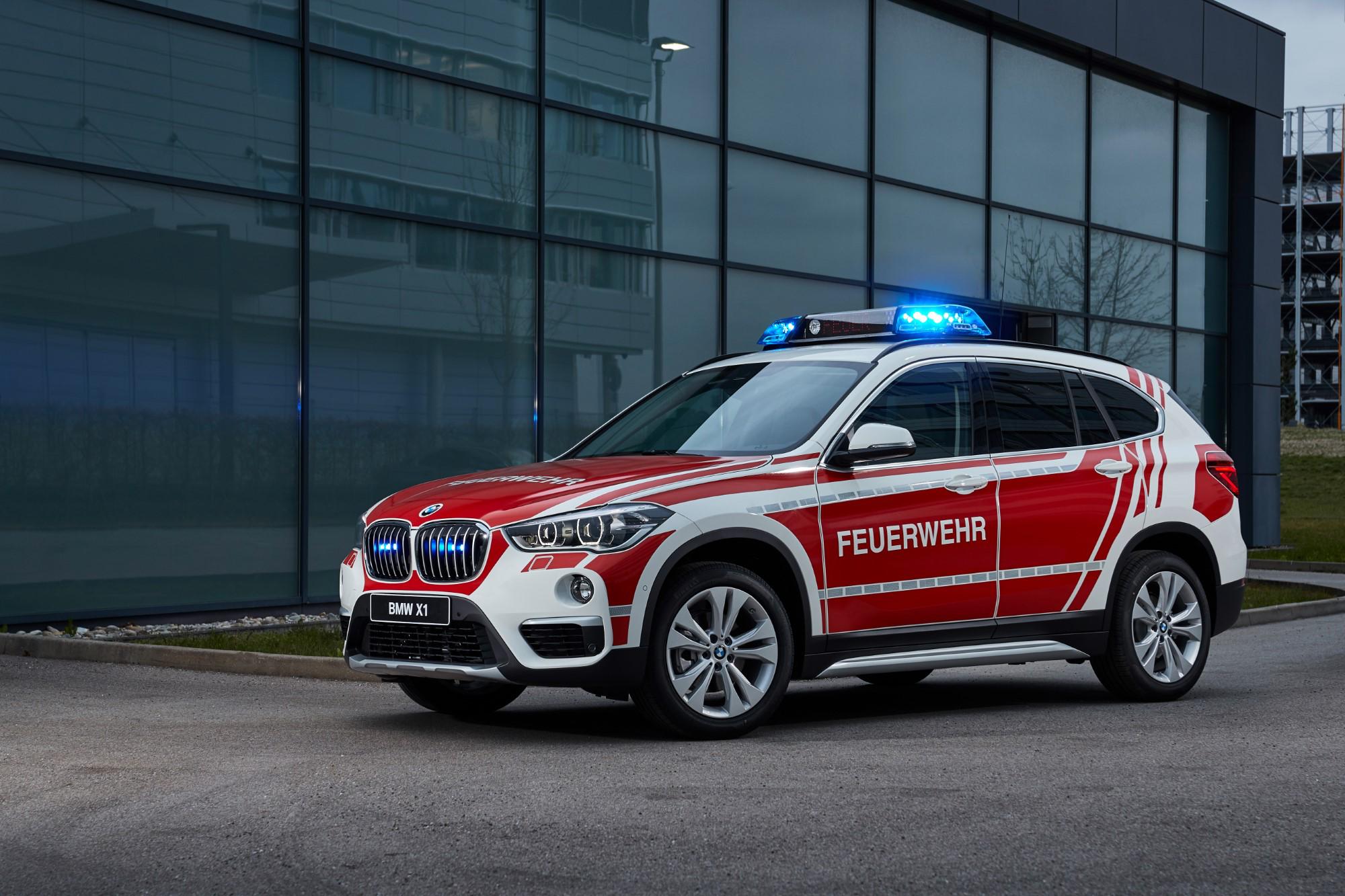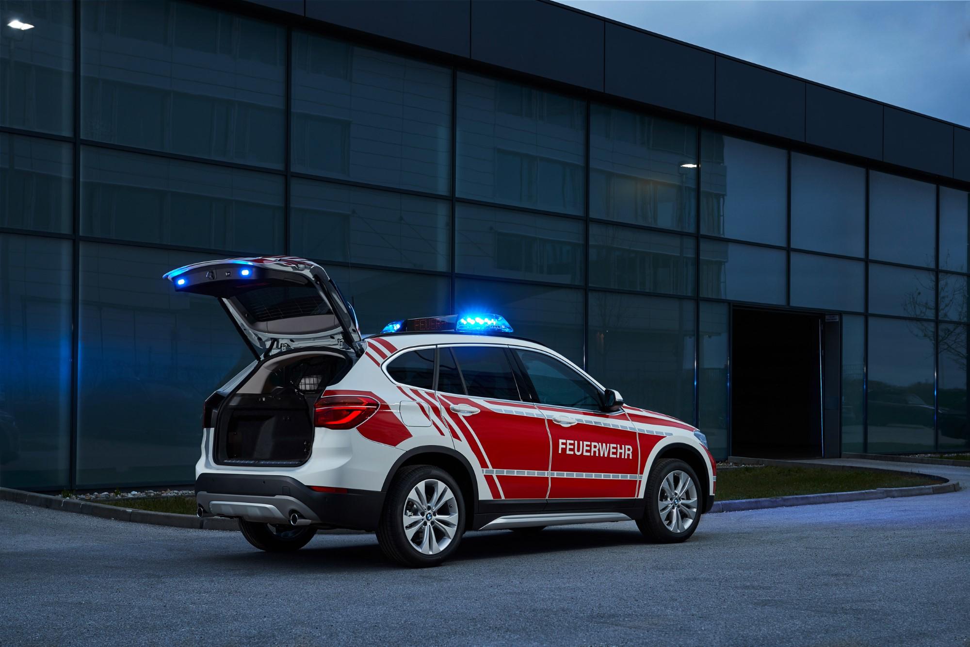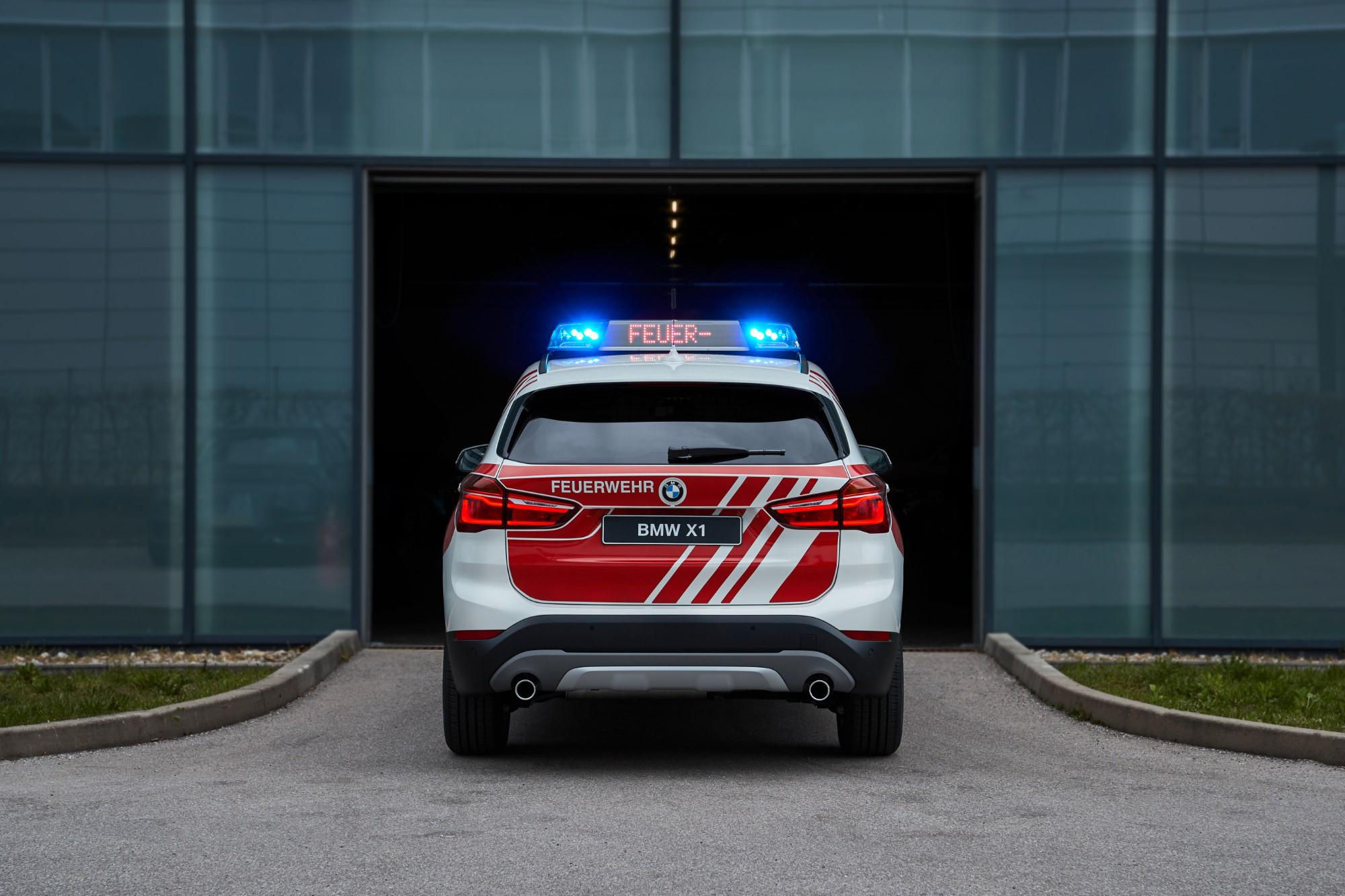 El BMW X1 se caracteriza por la confiabilidad, versatilidad, eficiencia y rendimiento dinámico. Esto hace que el todoterreno sea muy adecuado para una amplia gama de aplicaciones que requieren una visión general, velocidad y maniobrabilidad, por ejemplo, como vehículos de comando para el departamento de bomberos. Entre las características más visibles del BMW X1 xDrive18d en exhibición en RETTmobil 2019 se encuentran el llamativo envoltorio de diseño BMW en RAL 3000, el sistema de señalización especial y dos luces intermitentes LED azules en la parte delantera y trasera. Posee una segunda batería que alimenta los componentes específicos necesarios para el uso interno y la antena de radio.