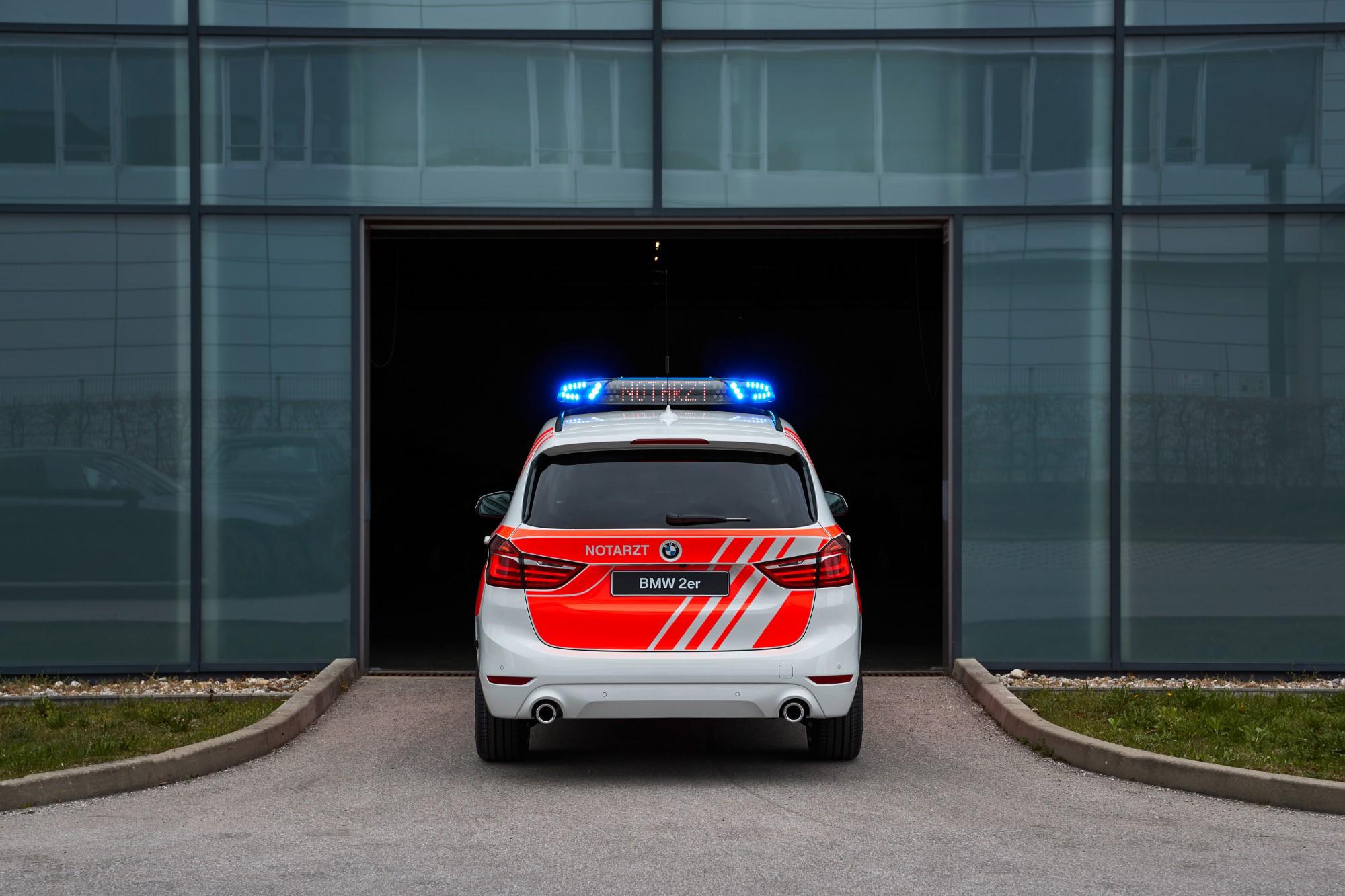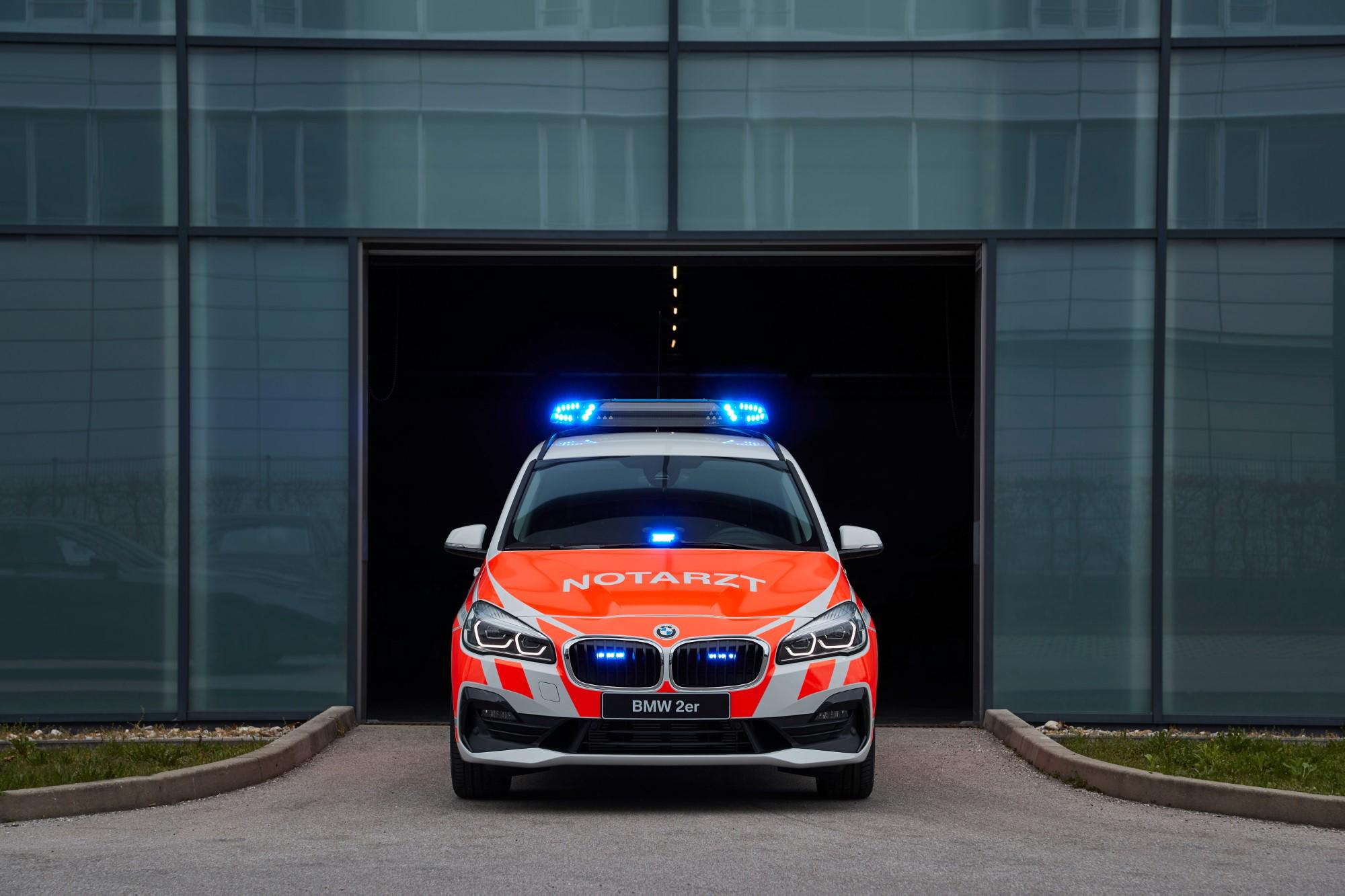 El BMW Serie 2 Gran Tourer impresiona por su flexibilidad, amplitud y variedad de detalles prácticos. Gracias a su asiento con la posición más elevada, puertas más grandes, el dinámico Sports Activity Tourer es perfecto para la conversión a un vehículo médico de emergencia. El equipo óptico se completa con luces intermitentes azules en la parte delantera y luces intermitentes azules y amarillas en la parte trasera, con otras luces intermitentes amarillas adicionales en la tapa del maletero.