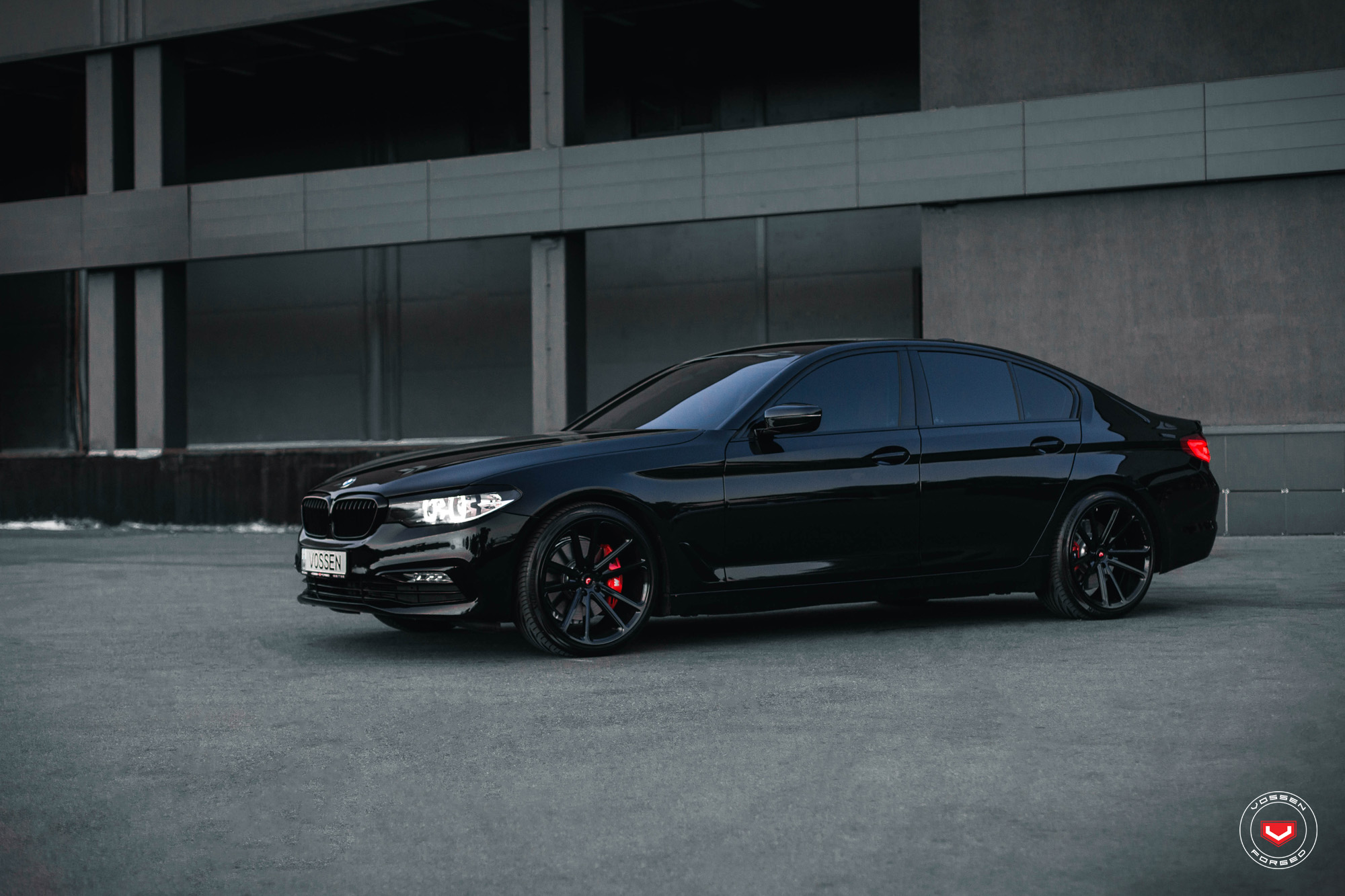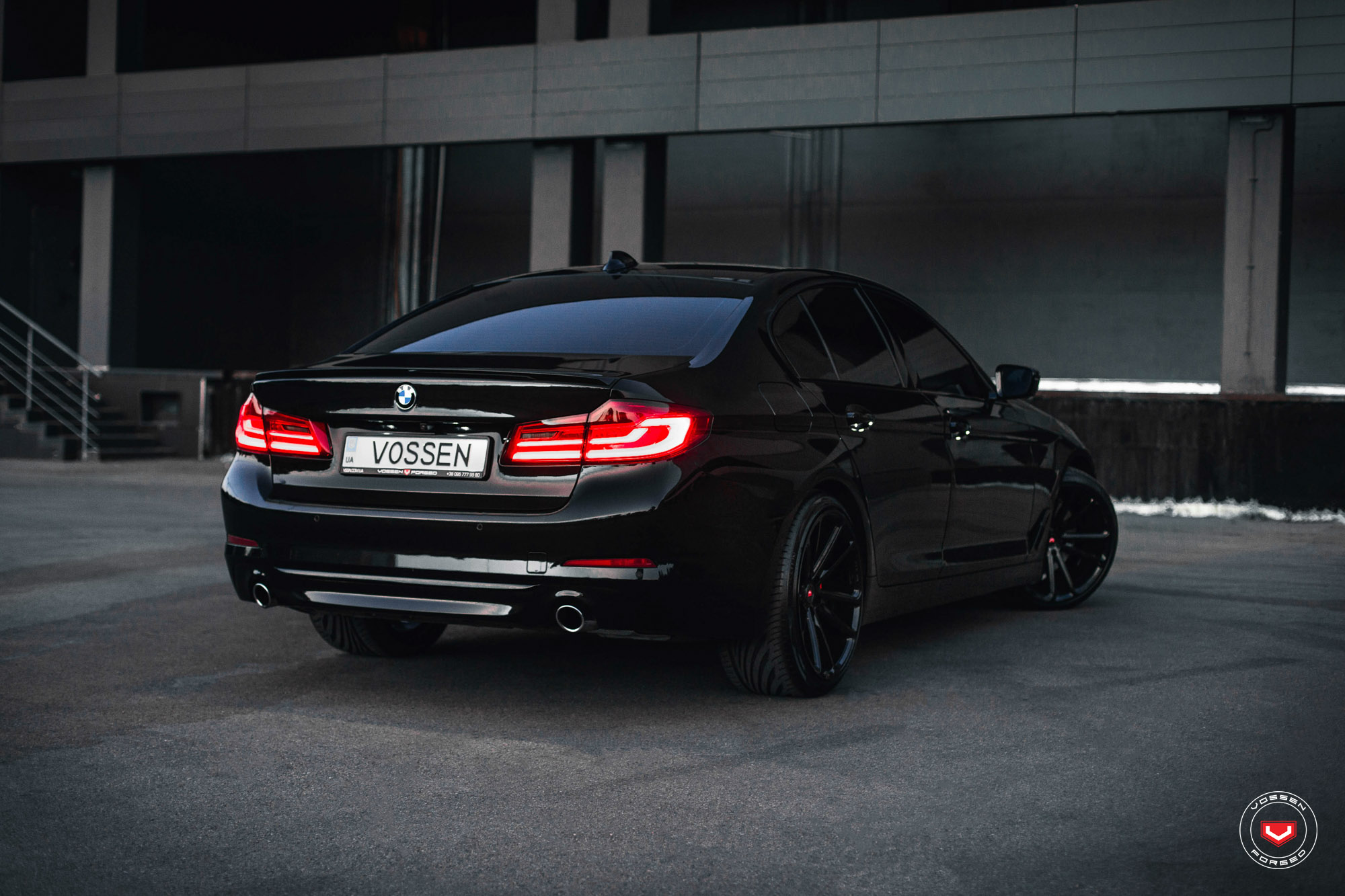 El coche cuenta con un juego de ruedas Vossen, también con acabados en negro, combinándose con un conjunto de frenos de rendimiento M con pinzas rojas. Esta versión cuenta con las llantas forjadas Vossen CG-203. El diseño cóncavo de la rueda, con configuración de radios divididos en cinco, se ajusta perfectamente al Serie 5. El cliente optó por ruedas de 20×9.5 y 20×11 en la parte delantera y trasera, respectivamente.