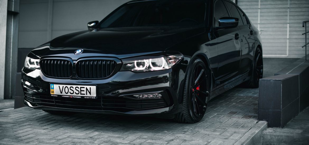 El coche cuenta con un juego de ruedas Vossen, también con acabados en negro, combinándose con un conjunto de frenos de rendimiento M con pinzas rojas. Esta versión cuenta con las llantas forjadas Vossen CG-203. El diseño cóncavo de la rueda, con configuración de radios divididos en cinco, se ajusta perfectamente al Serie 5. El cliente optó por ruedas de 20×9.5 y 20×11 en la parte delantera y trasera, respectivamente.