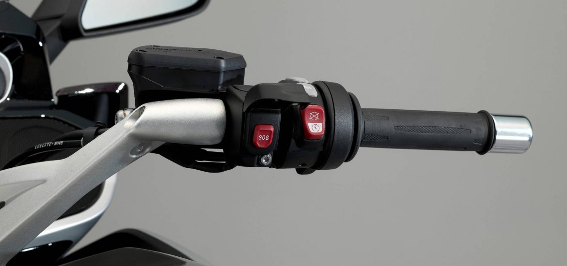 El conductor puede saber que se ha emitido una llamada de emergencia a través del testigo situado en el cuadro de instrumentos y de la señal acústica. La unidad de control de la ECALL está ubicada en el manillar derecho. Dispone del botón SOS, protegido por una tapa, que se utiliza para activar o cancelar llamadas de emergencia, así como de un micrófono y un altavoz integrados.