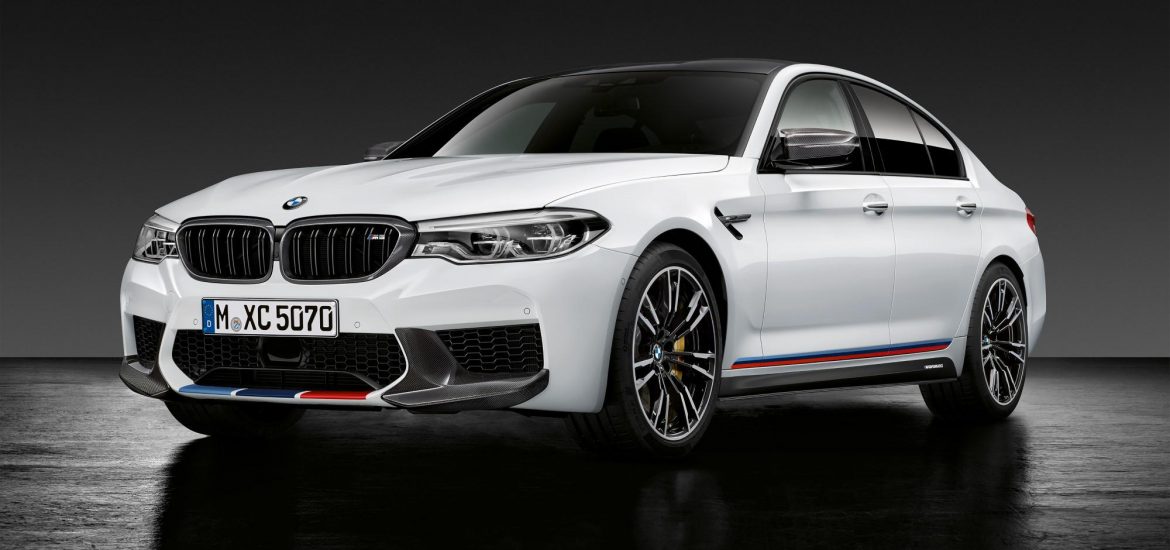 Se ofrecen los siguientes componentes aerodinámicos: un complemento delantero de nuevo diseño, estriberas laterales, un alerón trasero de fibra de carbono, un alerón trasero de fibra de carbono Pro y un difusor trasero. Todos estos componentes acentúan el aspecto poderoso y atlético del BMW M5, mientras garantizan una aerodinámica óptima y un manejo aún más deportivo.