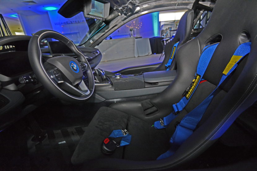 No es solo el sistema de carga inductiva lo que hace que el Qualcomm Safety Car BMW i8 Coupé sea diferente al coche que se puede adquirir en la producción, de cara al público. Otras áreas incluyen una barra antivuelco, alerón trasero y escotilla trasera hecha de fibra de carbono, un divisor delantero, asientos deportivos del BMW M4 GTS, cinturón de 4 puntos, un sistema de luces de señal montado en el techo, frenos cerámicos de carbono BMW M y un chasis de espíritu deportivo.